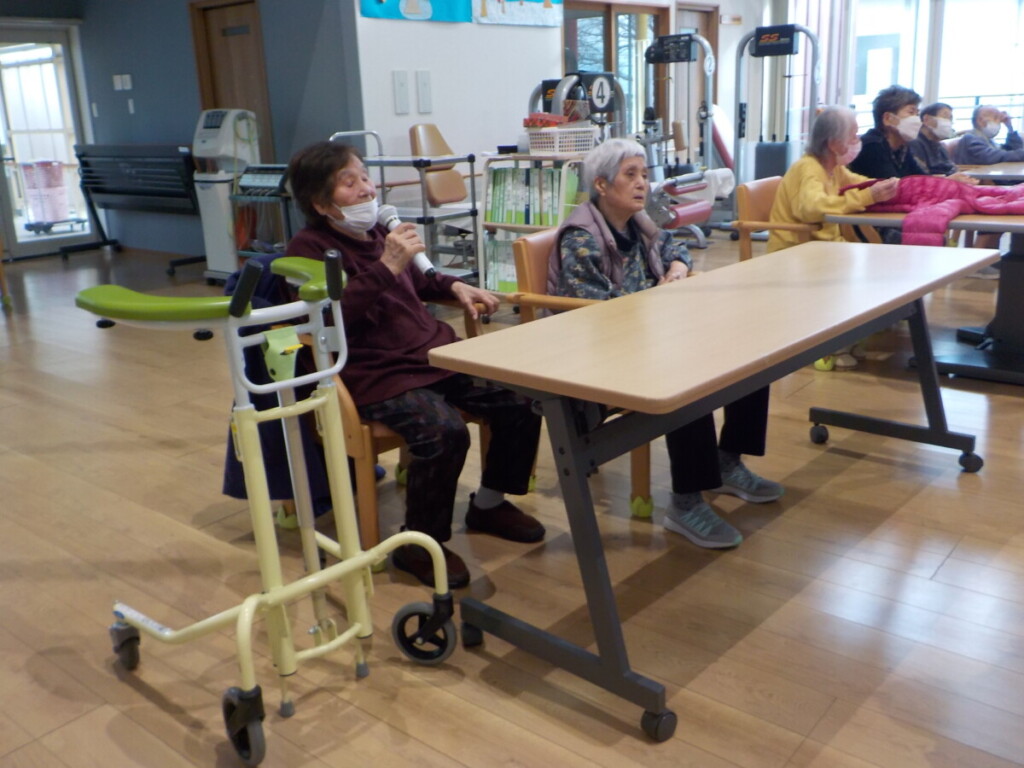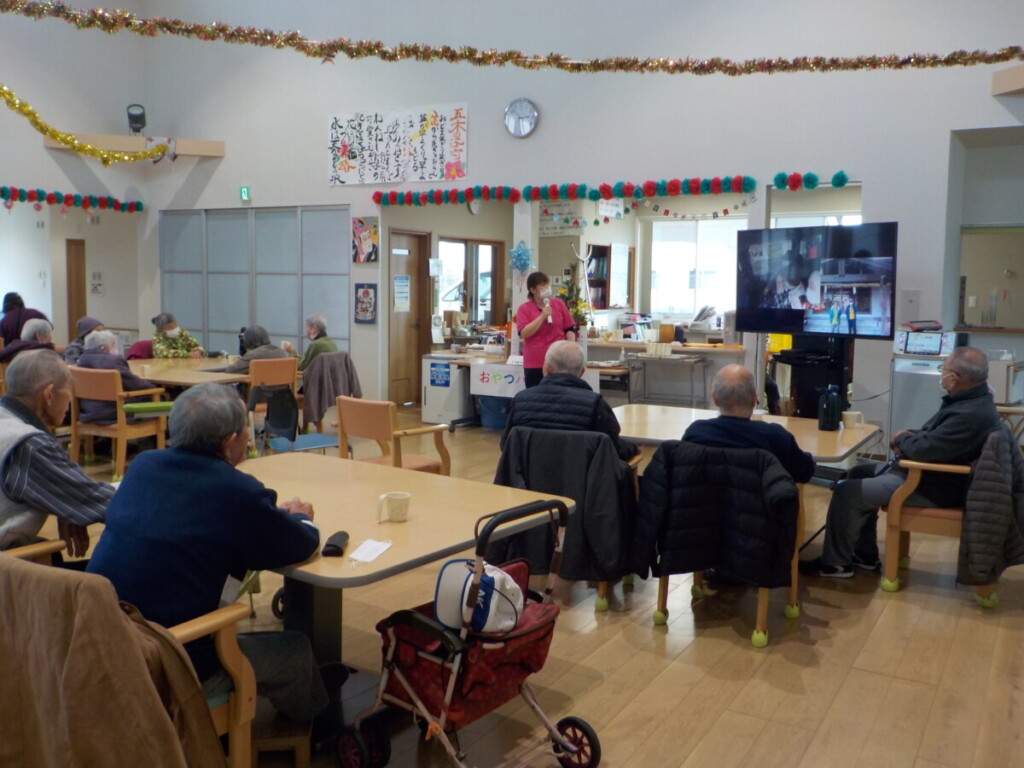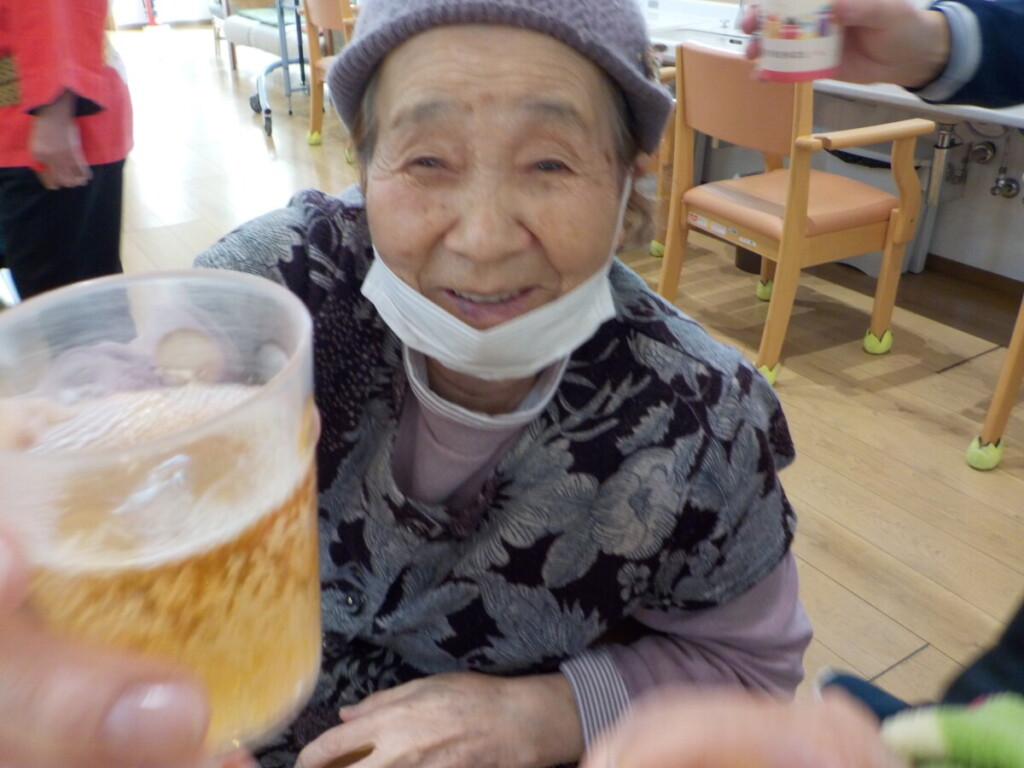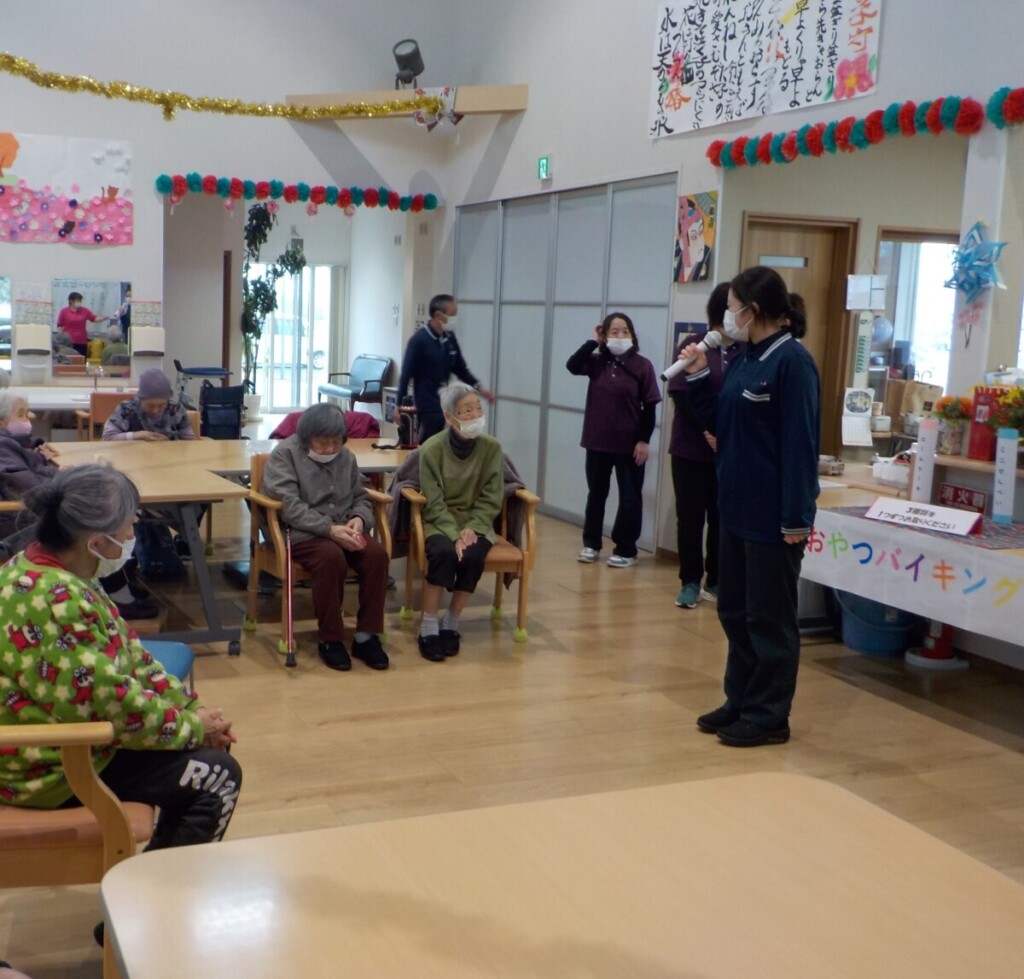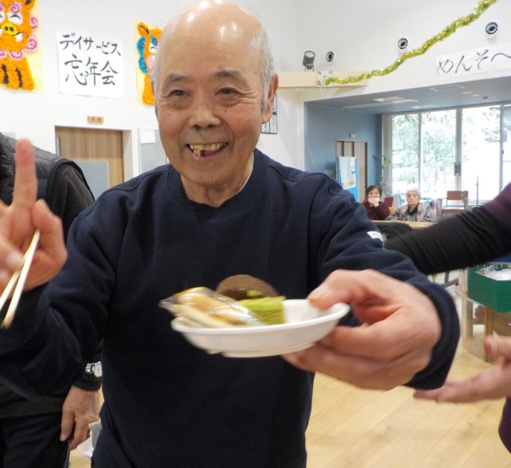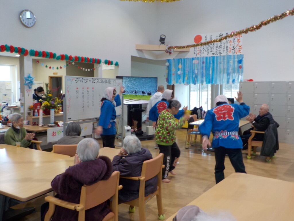 職員の、法被とチョビ髭の姿に笑みがこぼれるご利用者様😄