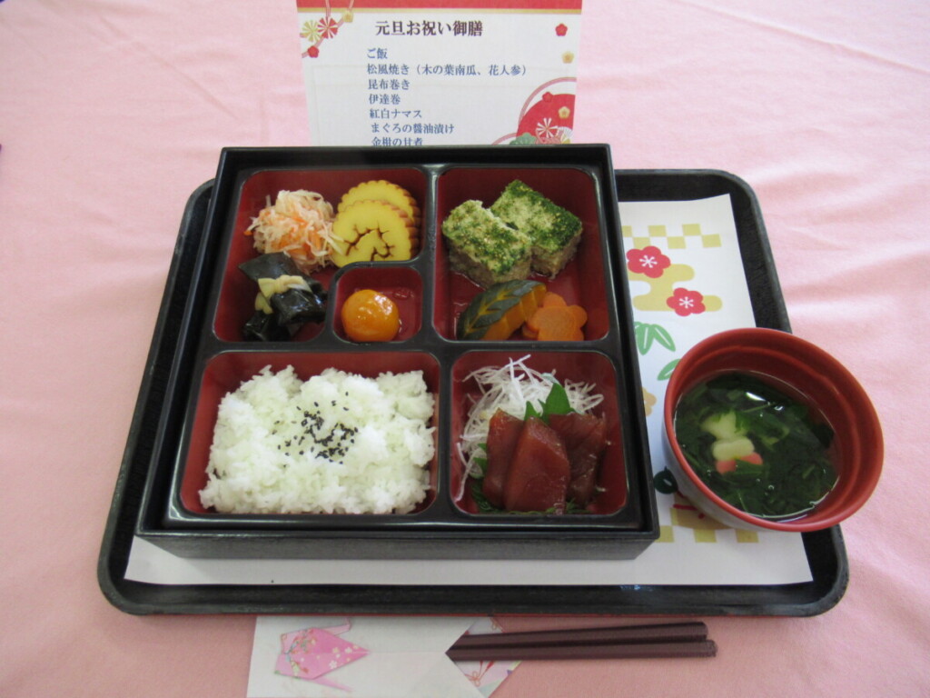元旦のお昼には、お正月ならではのお祝い御膳をご用意しました。
