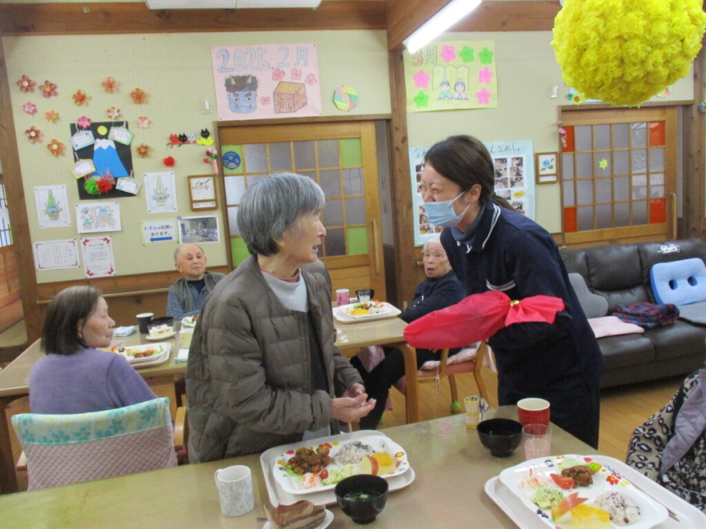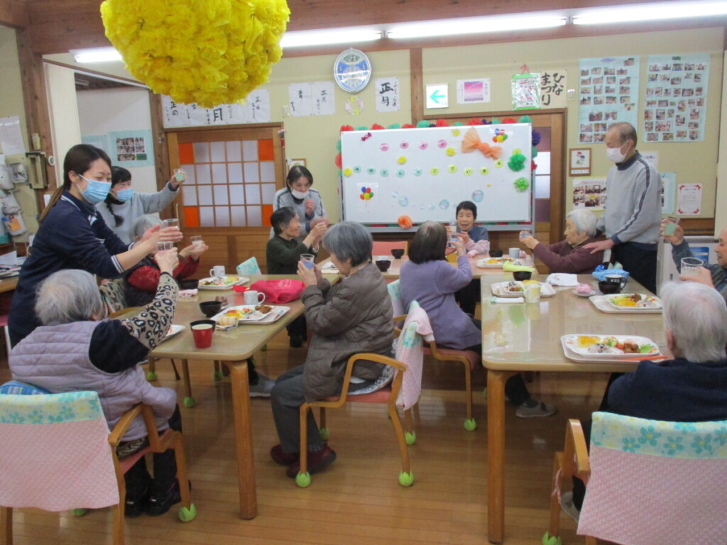 合同誕生会 2026 1/16 にしき園グループホーム 2026年1月13日 本日、3名の方の合同誕生会を開催しました。お一人ずつ挨拶をされて、皆様と一緒にお祝いしました。 乾杯! デザートのケーキをパクリ! これからもどうぞお健やかに。 ごちそうさまでした! にしき園グループホーム 鏡開き 関連記事 鏡開き 2026年1月11日 新春レクリエーション大会 2026年1月9日 お正月に 2026年1月1日 迎春 2026年1月1日 餅つき 2025年12月28日 クリスマス会 2025年12月25日 誕生会 2025年12月21日 誕生会 2025年12月1日