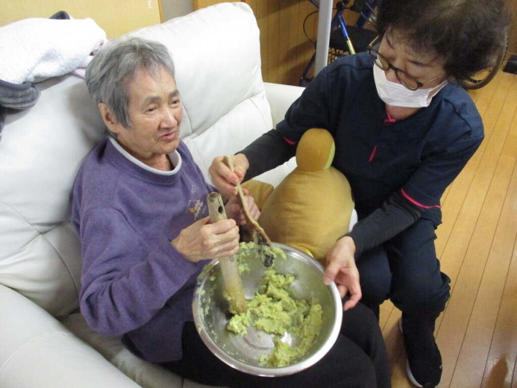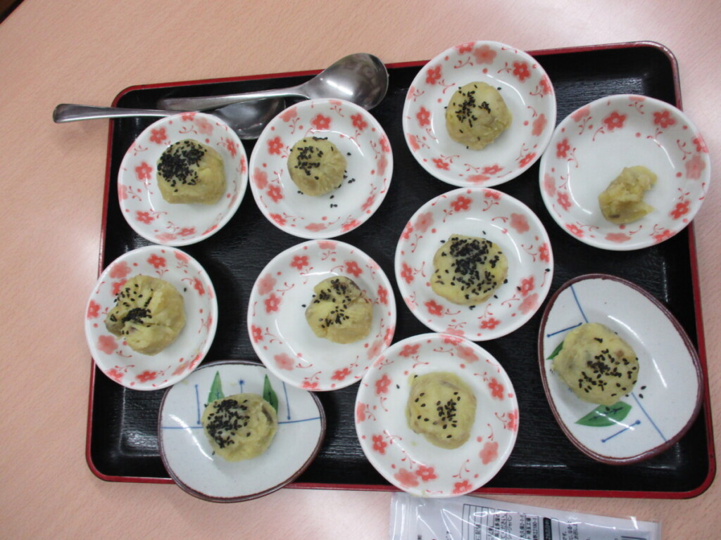 おやつ作り 2026 4/23 にしき園グループホーム 2026年4月23日 本日、皆様と一緒に芋きんとんを作りました。美味しくできました! ゴマを振りかけて出来上がり! ごちそうさまでした! にしき園グループホーム さんぱつ 関連記事 誕生会 2026年4月10日 花祭り 2026年4月8日 誕生会 2026年4月4日 園庭の桜の花見 2026年3月26日 梅園見学 2026年3月4日 ひな祭り 2026年3月3日 おやつ作り 2026年2月23日 花梅見学 2026年2月21日